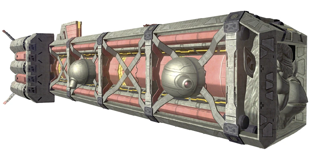 Adorned with Andross's imposing face at the front, the cuboid-shaped warships were armed with two laser turrets located along the top of the ships, and supported enough armor to be practically invincible against even Smart Bombs. However, the turrets, along with the four bunkers situated in pairs along each side of the Dorisby, could be easily destroyed by starfighter-grade lasers, rendering the battleship impotent.