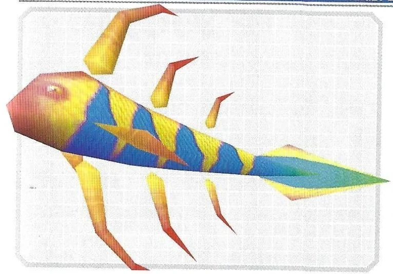 - “These long fish appear swimming slowly out of the blackness and cross your path. You won't have long to destroy them, so shoot torpedoes and lasers. Lock on your torps-you may get a Supply Ring from the first fish.”