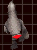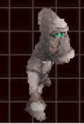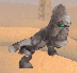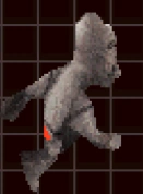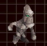 The Grunner has two attacks. For the first attack, the Grunner runs around the map, firing rocks from its rear and raising pillars from the ground behind it. These pillars come in pairs, and beams of electricity connect them. For the second attack, the Grunner stands still and beats its chest, causing a huge number of rocks to fall from the sky towards the Grunner. The smaller Grunners guarding the Mothership can only fire pink laser rings from their rear.