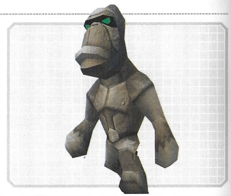 The Grunner, also known as Gorilla Runner (ゴリランナー Goriran'nā), is a boss that appears only in Star Fox Command. It is a gorilla-like bioweapon that was said to have been originally created by Andross and would later be controlled by his ghost to guard the Anglar Device on Titania that would neutralize the acidity of the Venom Sea. Smaller, weaker versions of the Grunner (called the Mini Grunner) do exist, and some of them can be found guarding Anglar Motherships on Titania as well.
