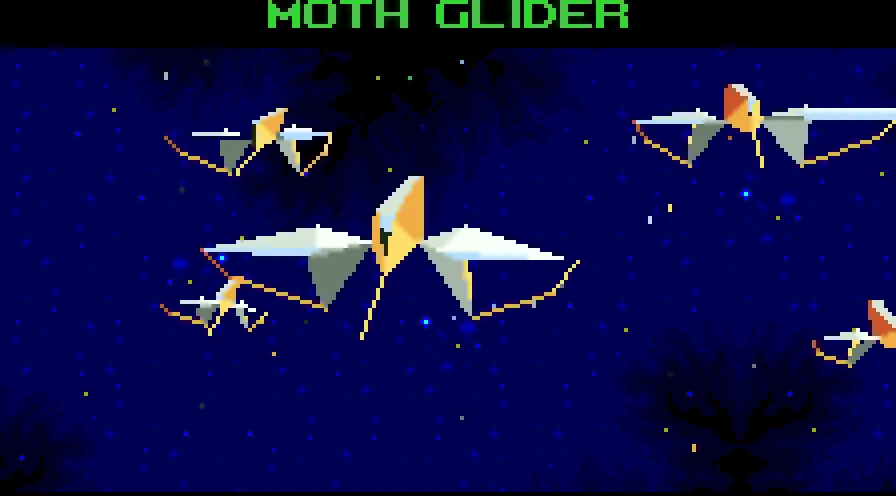 The Moth Glider is an enemy in Star Fox 2. They only appear on the map and would go towards Corneria or the player if they got close enough to it. They were also able to be shot down by the satellite system.