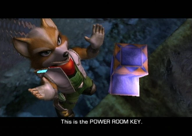 After Fox McCloud escapes the dungeon and frees Gradabug, the chief engeener of CloudRunner Fortress, who gives Fox the Power Room Key to activate the Wind Lifts. The Power Room Key itself does not turn on the power; the three Light Gems turn the power on.