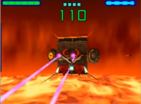The Solar Satellite has multiple weapons, as befits a machine referred to as the Ultimate Weapon. The two pods on the side of the Solar Satellite can open up to release homing missiles or Solar Fighters, which can be shot down to obtain fuel cells. The two emitters at the back fire lasers that can cut through a starfighter, even during a barrel roll. The only way to destroy the Solar Satellite is to shoot the top flap to tilt the Solar Satellite down into the lava below, as the weapons of a starfighter are not strong enough to pierce the Solar Satellite's armor.
