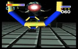 Rumour has it that there's a long forgotten warp gate connecting Sector X to Sector Z on the left-hand side of the space base. Falco will locate four warp gates on a dangerous path, protected by well made barricades and booby traps, leaving hit or miss opportunist for the Arwing to squeeze through. Tilting, boosting and braking are needed to avoid smashing into obstacles. Failing to open all four gates will lose the jump to light speed, forcing the warp zone route to cancel and head over to Spyborg instead. If the route taken to Sector X included Katina, Bill Grey will appear to return the favour made for helping the Bulldog and Husky Unit's attacks against Saucerer, by flying on the left side path to help open the warp gate. But if the route taken to Sector X did not include Katina, Bill won't know where Star Fox had gone to so he won't appear at all.