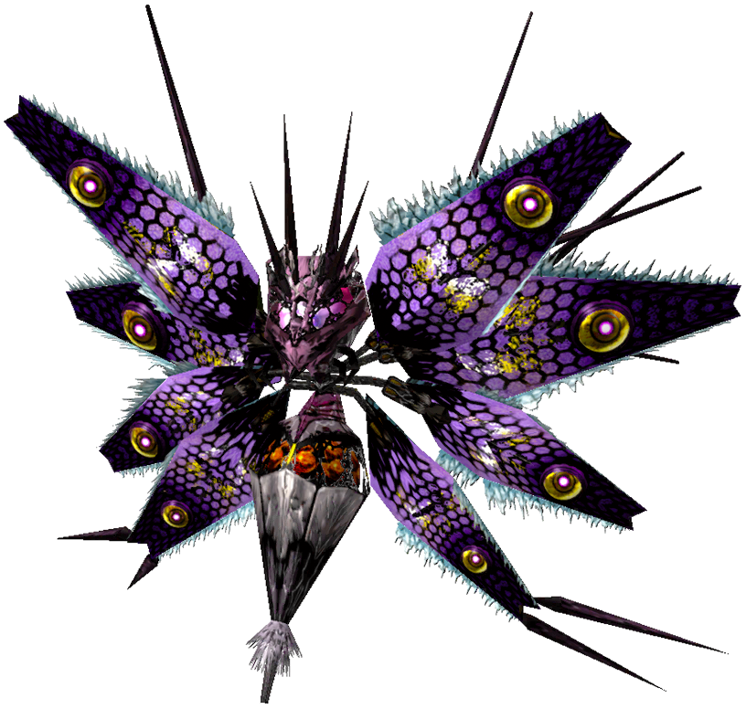 Zegdalia's attacks are many and varied, including firing beams of ring-shaped pulses from spots on its wings, missiles from its mouth, and a fiery beam weapon from its backside which it may either aim directly at the Arwings or use to heat the ground and lift from the ground chunks of molten debris, which it uses to hurl at enemies. In order to defeat it, its wings must first be destroyed, after which it will reveal a purple orb within its mouth which must be shot to deplete its health completely.